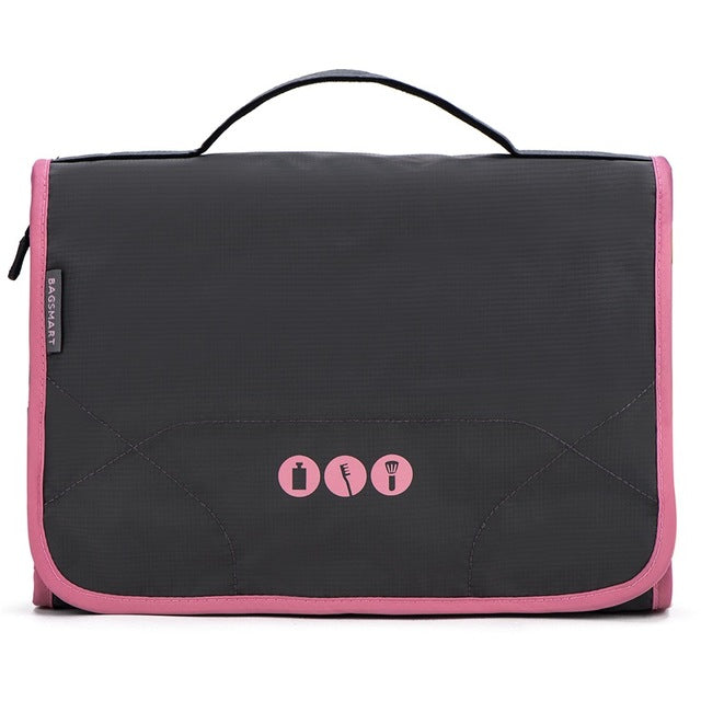 Comes with hook for you to hang the travel bag easily such at bathroom door, shower rod, towel rack, etc. This travel toiletry bag can be vertically unfolded and this will make it easier to access all of your products.